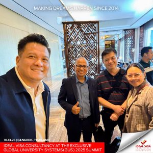 Ideal Visa Consultancy proudly took part in the exclusive Global University Systems (GUS) Intelligence Forum 2025 held in Bangkok, Thailand, represented by our Chief of Operations, Mr. Hector Angeles.